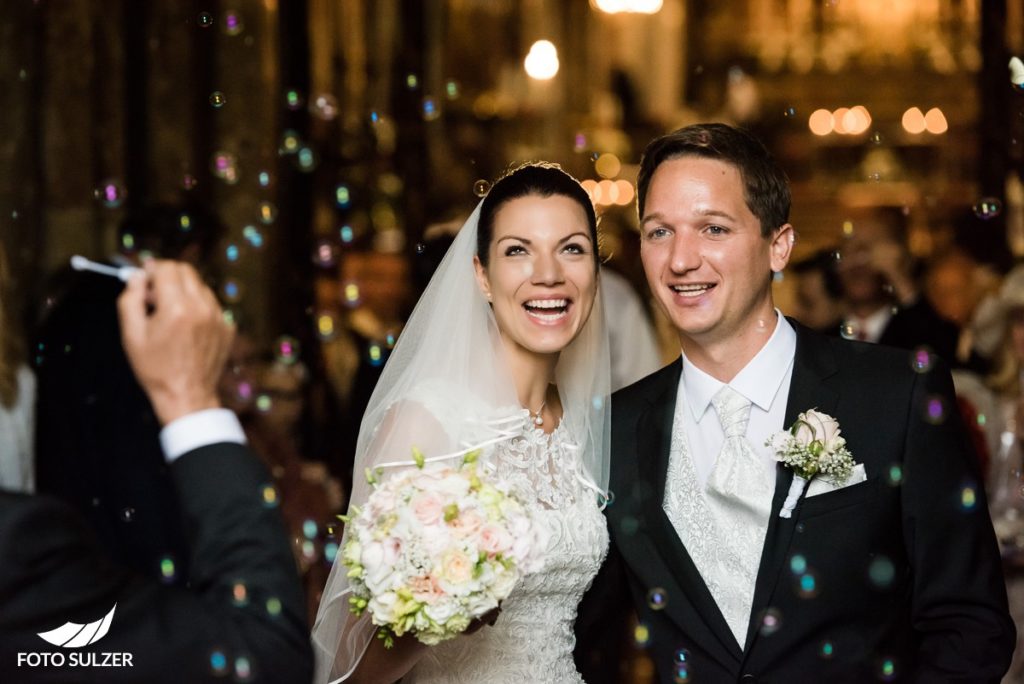 Angelika und Lukas feierten ihre kirchliche Trauung in der Stiftskirche St. Peter in Salzburg. Ich startete meine Hochzeitsfotografie bei der Vorbereitung der Braut. Sie, ihre Mutter, Bruder und ihre Trauzeuginnen machten sich mit Hilfe von Kathrin Mayr-Boskovic und ihrem Team von Fantastique Beauty & Style für die Hochzeit fertig. Nachdem ich die Vorbereitungen der Braut bei ihr Zuhause fotografiert hatte, zog der Bräutigam mit seiner Mutter in die Kirche St. Peter ein. Beim Einzug der Braut in die Kirche, die von ihrem Bruder begleitet wurde, konnte ich ein paar schöne Aufnahmen des Bräutigams mit seinem Trauzeugen machen. Die Stiftskirche St. Peter in Salzburg ist ein toller Platz um zu heiraten. Der Prior Virgil Steindlmüller hielt eine berührende Trauungsmesse. Nach der Trauung und dem Kuss des Brautpaares gab es viel Applaus und Freude beim Auszug. Das frisch vermählte Brautpaar wurde von seinen Gästen mit Seifenblasen empfangen.